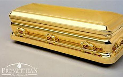 "The casket, called a Promethean, will feature a blue velvet interior and a hand-polished, mirror finish, according to TMZ.com.